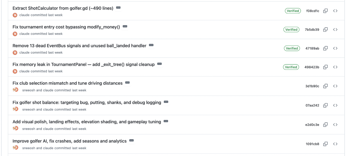Pick one feature, make it great, then layer. I wasted at least two full days trying to get golfer AI and building placement working simultaneously, only to completely rip the first version of the AI out. Every time Claude touched the golfer code it broke the buildings and vice versa. The lesson is basic software engineering — get one system solid, wrap it in tests, commit it, then move on. AI doesn’t change this, it just makes it tempting to skip because the agent feels like it can handle the complexity. It can’t, reliably.