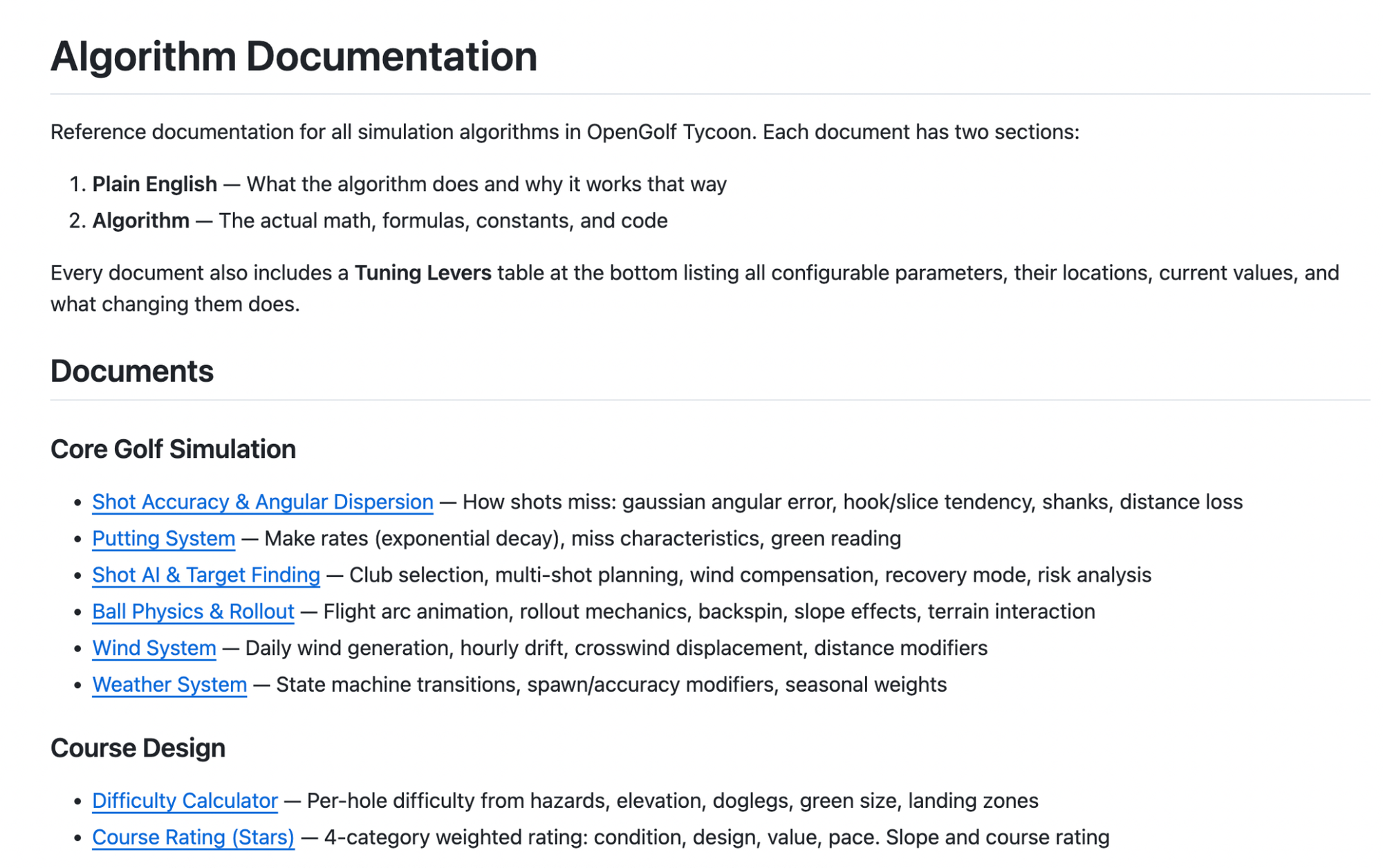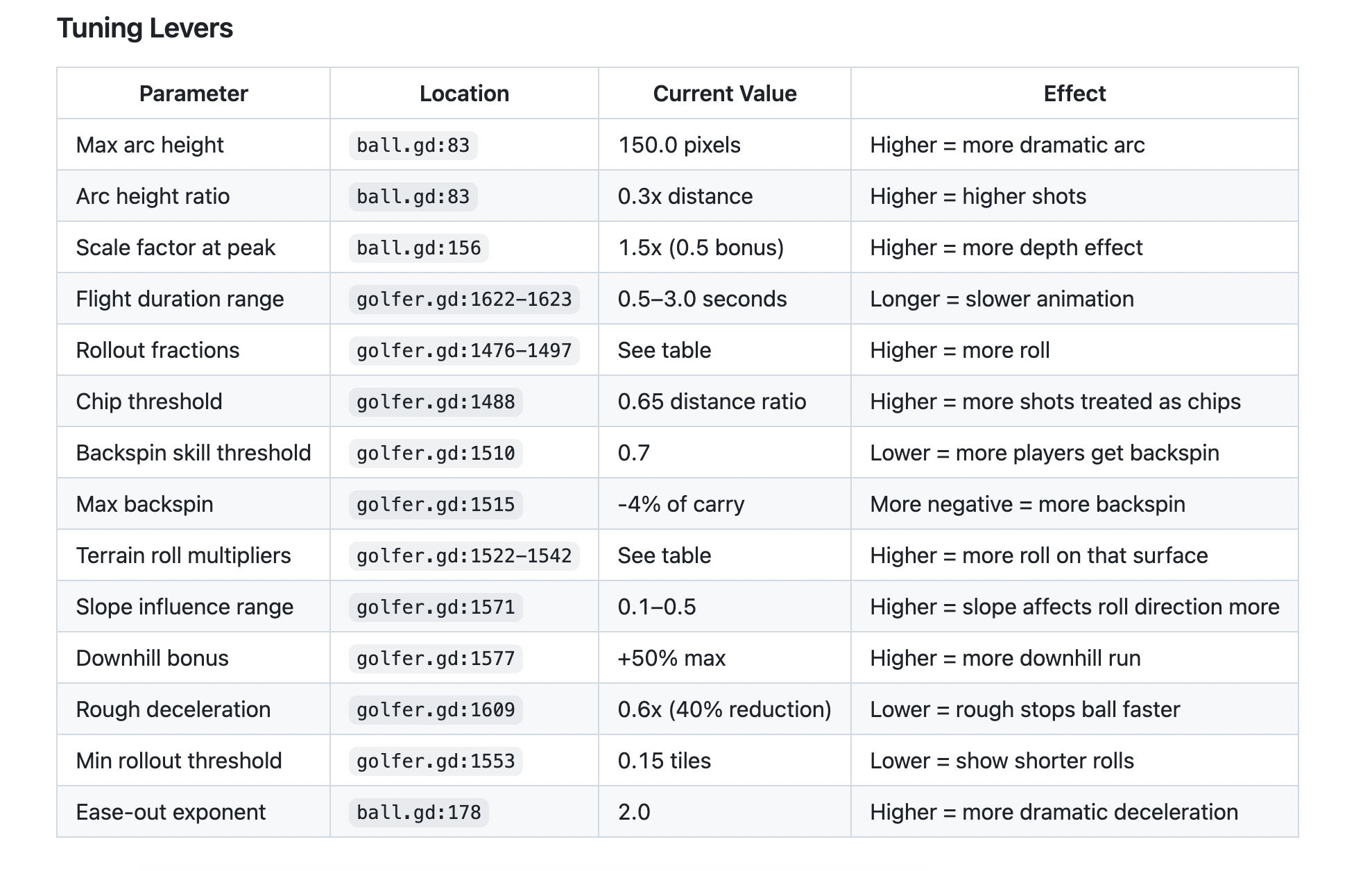 Instead of having to mess with the code and variables directly, I can open a PR with adjustments to either the plain English description or the tuning section and then have the model challenge any issues and watch it play out on the course. Or directly manipulate the tuning lever table and ask Claude for updates, instead of hunting for variables in code.