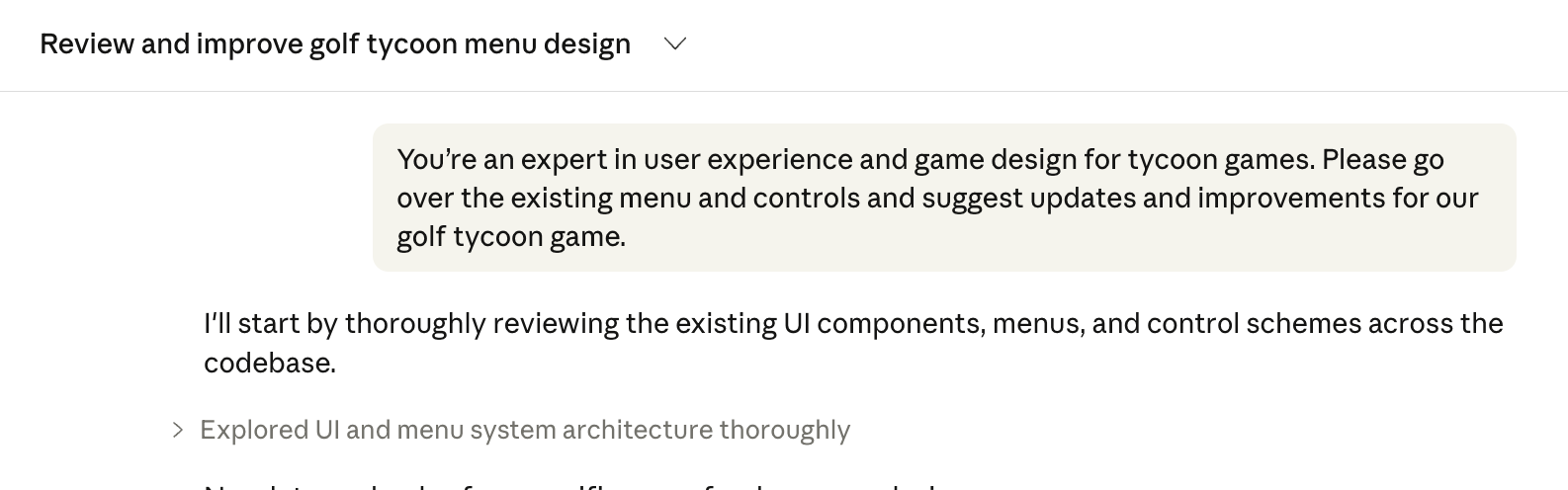 The first step was prompting Claude Code to create the scaffolding of a tycoon golf game.